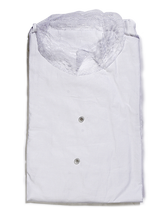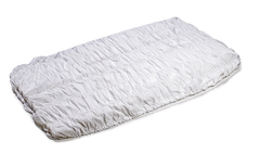 Sargbespannung aus Linon, weißblickdicht, siebenfach gerafft